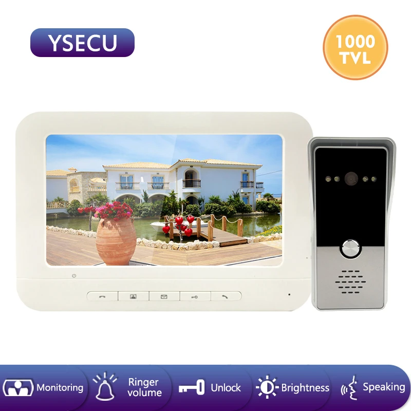 ORIGINAL YSECU 7 inch 1000TVL LCD Wired Video Door Phone Visual Video Intercom Speakerphone Intercom System