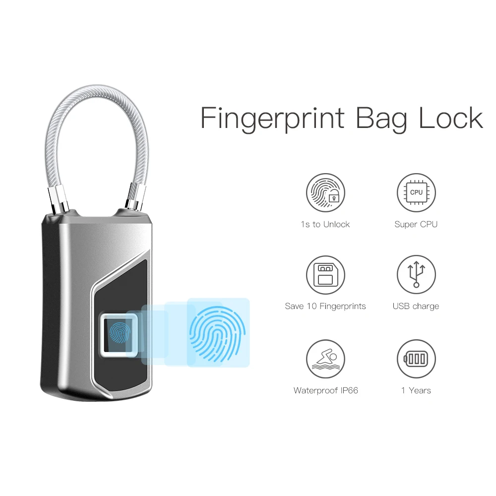 ORIGINAL New USB Rechargeable Smart Lock Keyless Fingerprint Lock IP66 Waterproof Anti-Theft Security Padloc